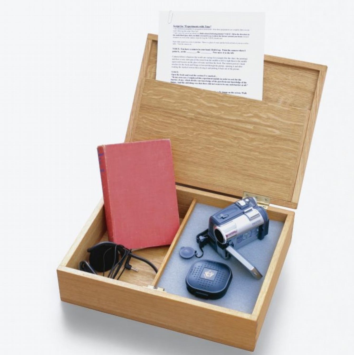 本書讓讀者也能製作自己的Video Walk,是個只要寄影帶回去,藝術家還會幫你剪輯的入門set。大小為15 x 40 x 30 cm的木盒中內含攝影機、麥克風,以及1912年由前飛機設計師J. W. Dunne撰寫,探討預知夢和序列論(Serialism),影響H. G. Wells和C.S. Lewis等一眾文學大佬的同名書籍早期版本。連《蘿莉塔》的作者Nabokov,都在讀後於1964年留下記錄夢境的日記《Insomniac Dreams》,無怪乎Cardiff & Miller也會向其致敬。